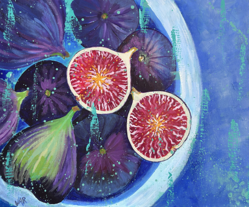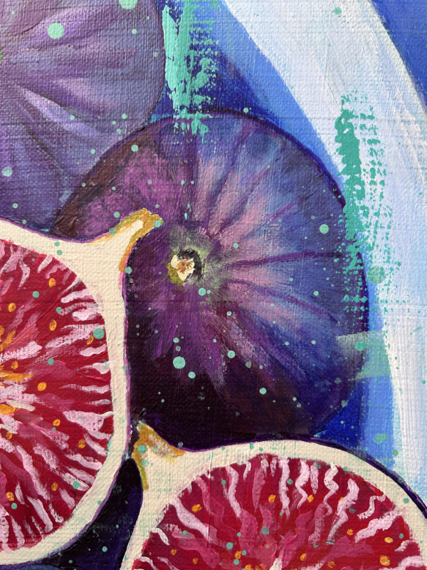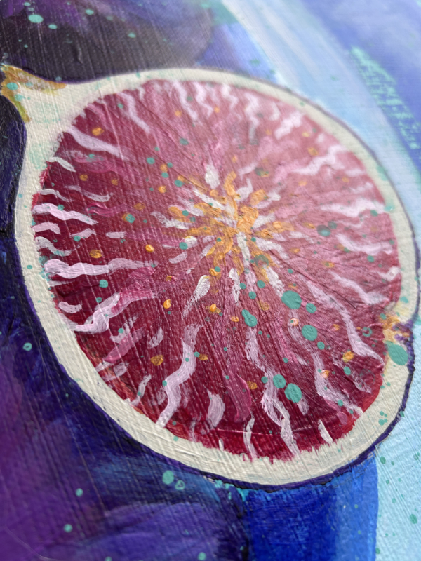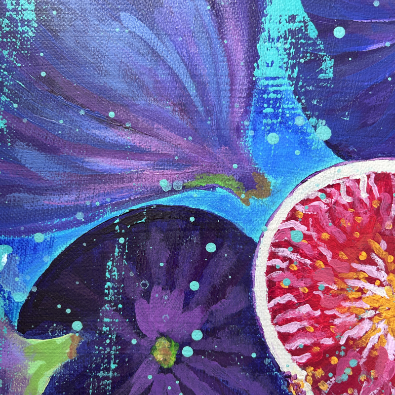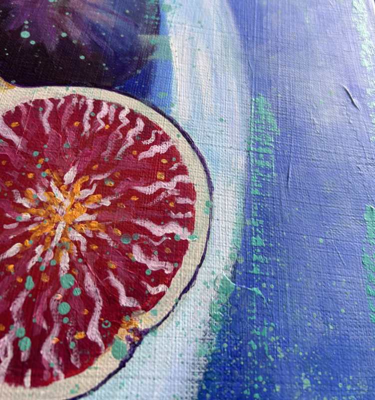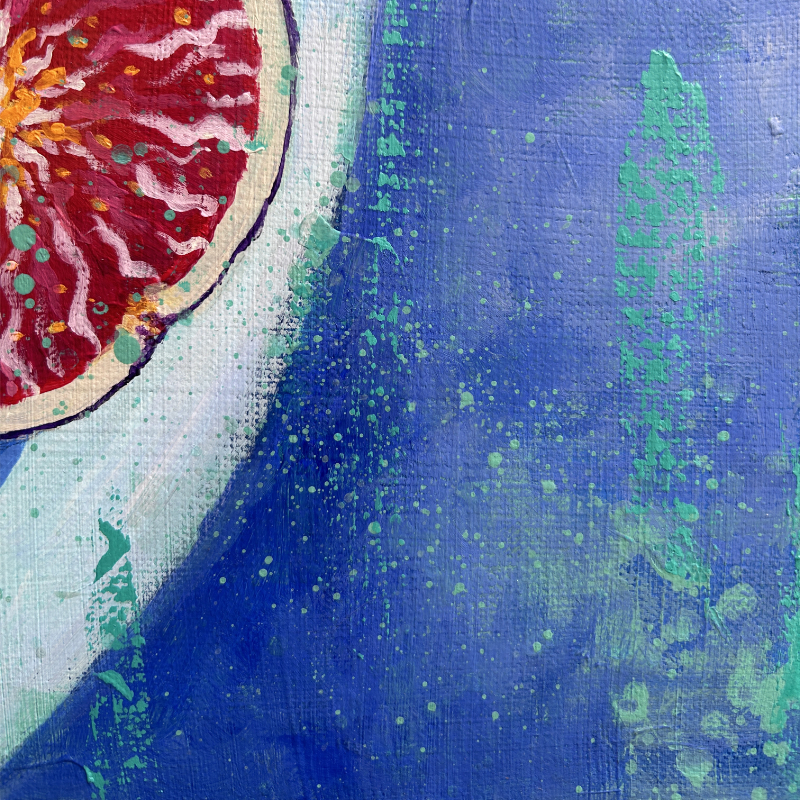 Toile issue d’une série de « Figues » réalisée en 2023. La version présentée ici est la plus moderne et colorée.
