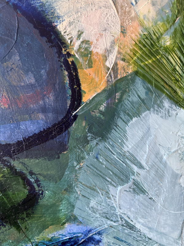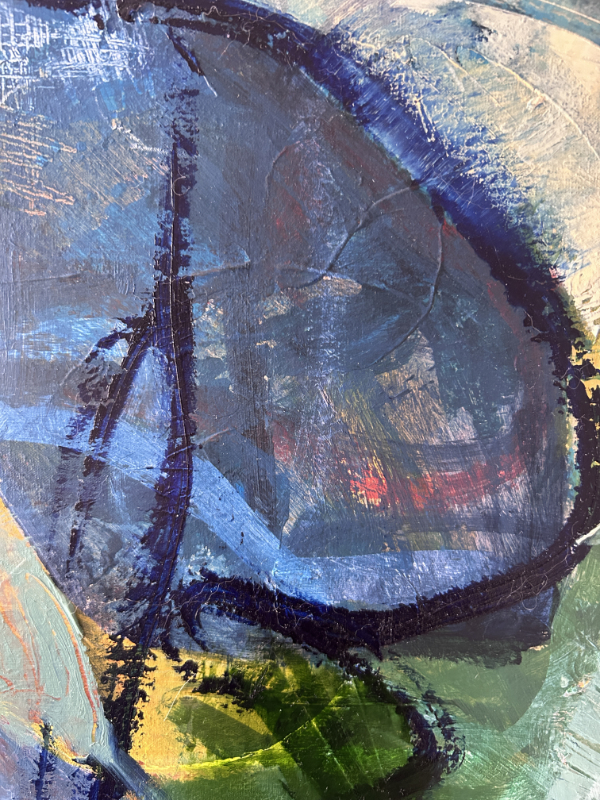 Cette toile a été réalisée sur une base de peinture acrylique puis de de peinture à l’huile.